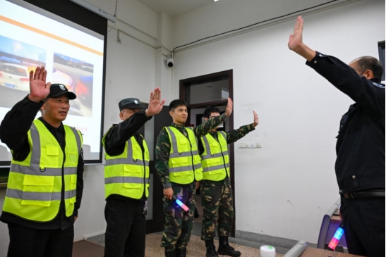 实训实操环节,高警官将8种常用交通指挥手势信号进行动作分解和示范,仔细观看每位参训队员的动作,纠正不到位、不规范的动作,确保参训人员动作做到规范标准。要求全体保卫人员在培训结束后加强对交通业务的学习和融会贯通,切实做到学以致用。