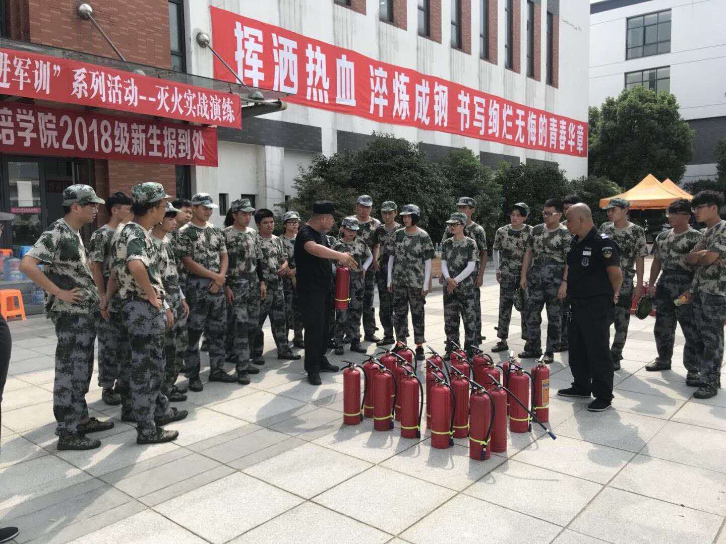 深入贯彻落实夏季消防安全大培训活动及消防进军训工作方案,推动学校消防安全理论和实践教学制度化、常态化,提高学生群众的消防安全意识和自防自救能力,全力防范火灾事故的发生,9月3日,学校开展消防常识“进军训”活动。活动由消防知识讲解、实地灭火演练两部分组成。
