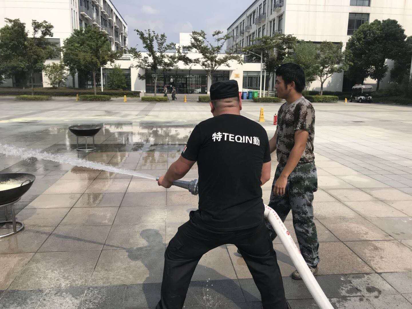 此次活动邀请消防培训学校老师就火灾的危害、常见火灾的预防、如何正确报警、如何逃生向同学们进行了详细的讲解,号召同学们要认真学习消防知识和技能,自觉遵守学校规章制度,杜绝使用违章电器。随后,中队班长郭继传向同学们介绍了灭火器的使用方法,并进行了消防车喷水灭火演示。为确保同学们掌握灭火器的使用方法,各军训方队选派代表到空旷地带进行了实地灭火训练。