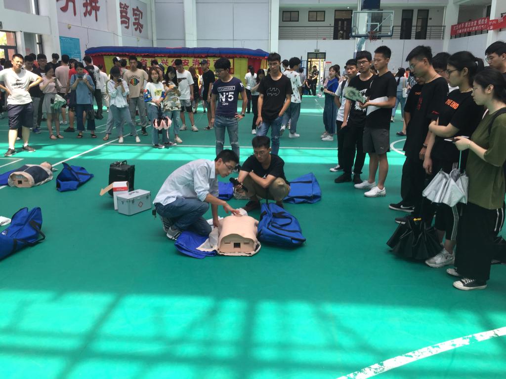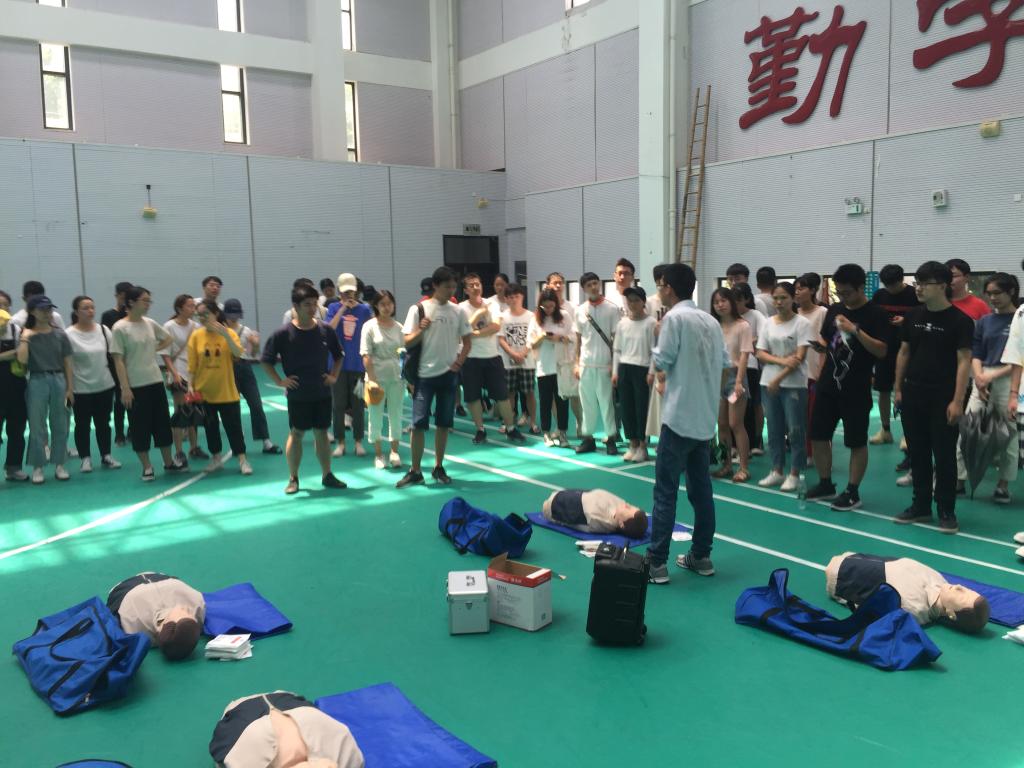 本次培训内容包括消防逃生专题(逃生帐篷演习)、消防基本常识、基本现场急救实践操作(心肺复苏)以及常见灭火器材讲解,消防设备的性能和使用方法。活动场地主要划分为两个场地。东侧主要讲解消防知识,西侧讲解救护知识。东侧,消防队队员向参加成员讲解了消防知识,并带领学生体验了逃生帐篷模拟疏散。西侧,医生现场展示了心肺复苏及人工呼吸的方式,并指导现场同学体验了模拟人救护。