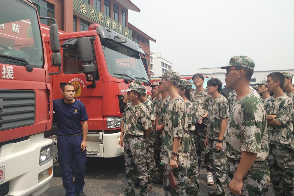 9月11日开展了灭火演练。讲解灭火器使用方法,指导学生按照要领进行灭火实战演练,进一步提高了自护自救的能力。同时组织学生参观消防警营,通过观摩消防车辆和救援设备,听取车辆和设备的主要用途和使用方法及基础的消防安全知识,提升学生消防技能应用能力。