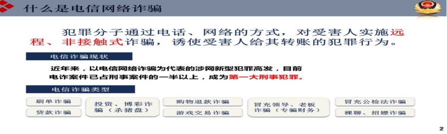 在信息飞速发展的今天,网络给人们带来便捷生活的同时,各类高科技犯罪也随之蔓延,大学生由于社会阅历浅、防骗意识弱,成为电信诈骗的高发群体。在安全教育讲座中,反诈讲师吴晓宇警官用通俗易懂的方式讲解当前电信网络诈骗常见手段,分析了各种电信网络诈骗的类型,形象生动的为同学们展示大学生如何一步步掉入骗局中去的。根据诈骗类型,吴警官还提出相应的防范方法和应对策略,让同学们不要存有侥幸心理,发现疑似骗局的苗头,立即向学院警务站咨询。
