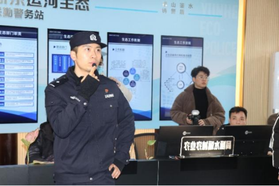 首先,学生干部在讲解员的带领下,深入了解了浙东运河生态联勤警务站的工作模式。该警务站布局科学合理,涵盖宣防宣教、联勤联动、情报研判和装备展示等多个功能区。宣防宣教区以图文并茂的展示和生动案例的分析,让学生干部直观地了解到生态保护相关知识;联勤联动区则强调了各部门之间的协同合作,确保迅速响应和高效处理各类警情及生态环境问题,实现信息共享、资源共用、执法联动。