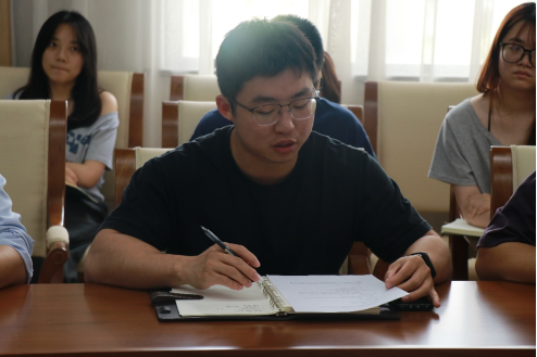 随后,安全保卫部各位老师进行自我介绍并阐明自己的工作职责。最后,黄超军老师严明纪律规范,要求建立完善的值班台账与岗位操作流程,强化工作留痕机制,同时要确保换届工作顺利进行。陈永东老师重点指出学生干部全局意识不足、策划创新能力欠缺等问题,强调干部需主动提升站位,立足校园安全治理维度建言献策。