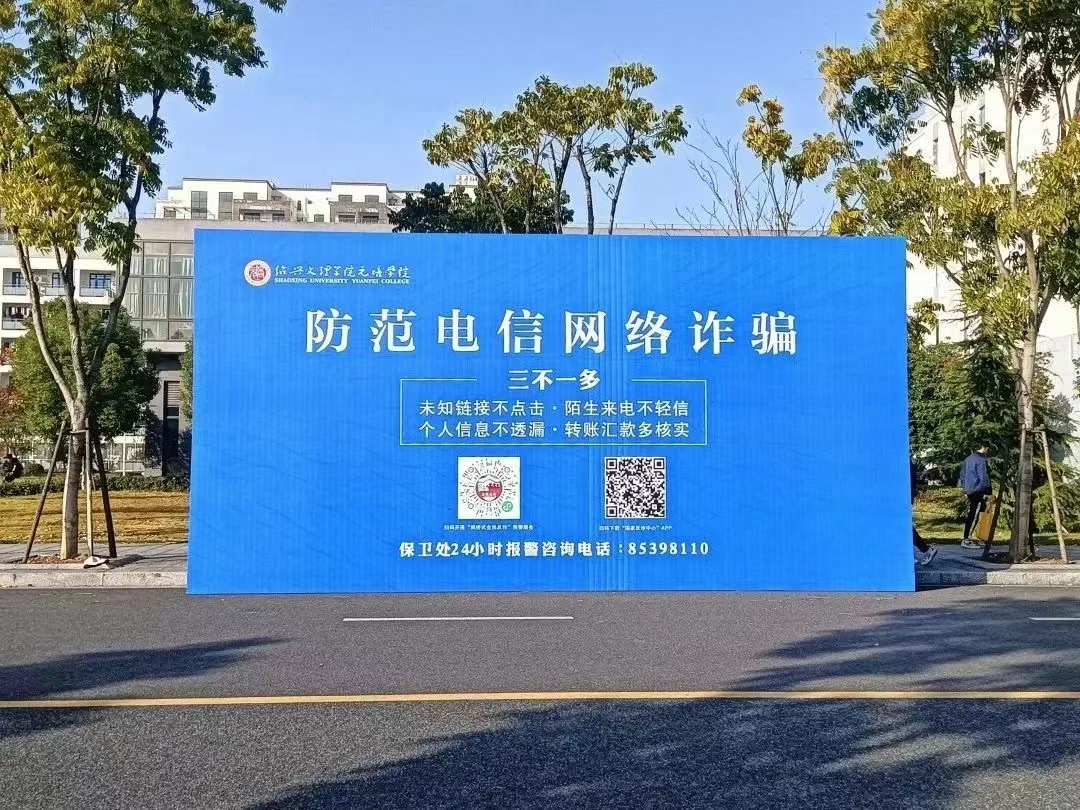 防范电信网络诈骗已一周年,同学们需继续加强反诈意识。在校园内,我们陈设了多处防范电信网络诈骗标语以及案例。