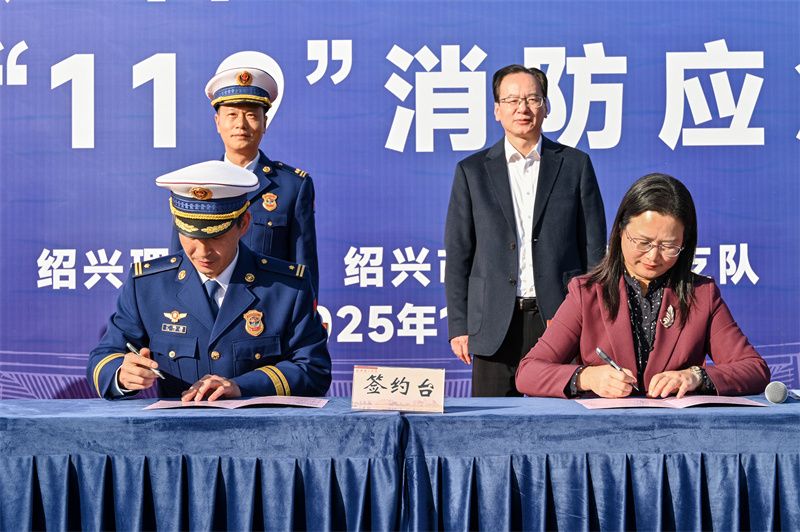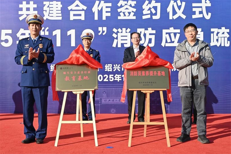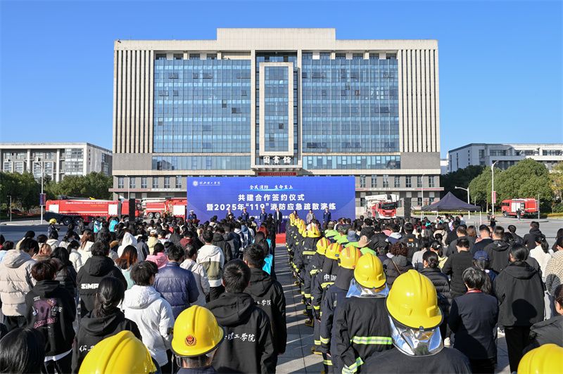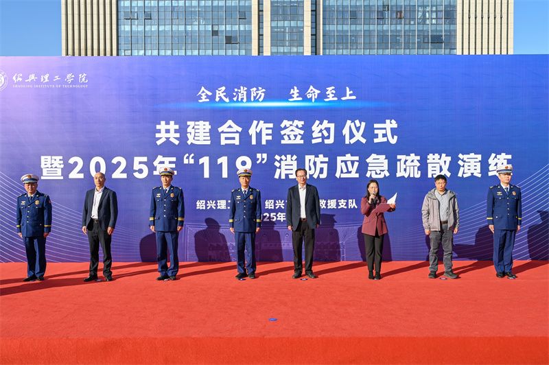 11月26日下午,绍兴理工学院在图书馆举行2025年“119”消防应急疏散演练暨消防共建签约仪式。校长张宏、副校长王华锋、方泽波,绍兴市消防救援支队支队长李宿龙、副支队长丁健勇等出席活动。校党委副书记高丽静主持本次演练活动。